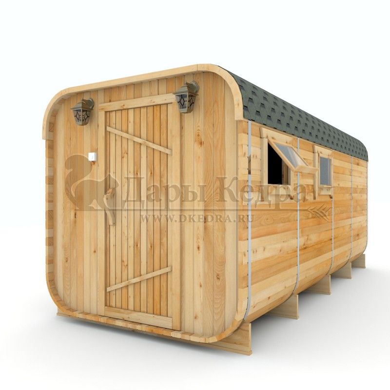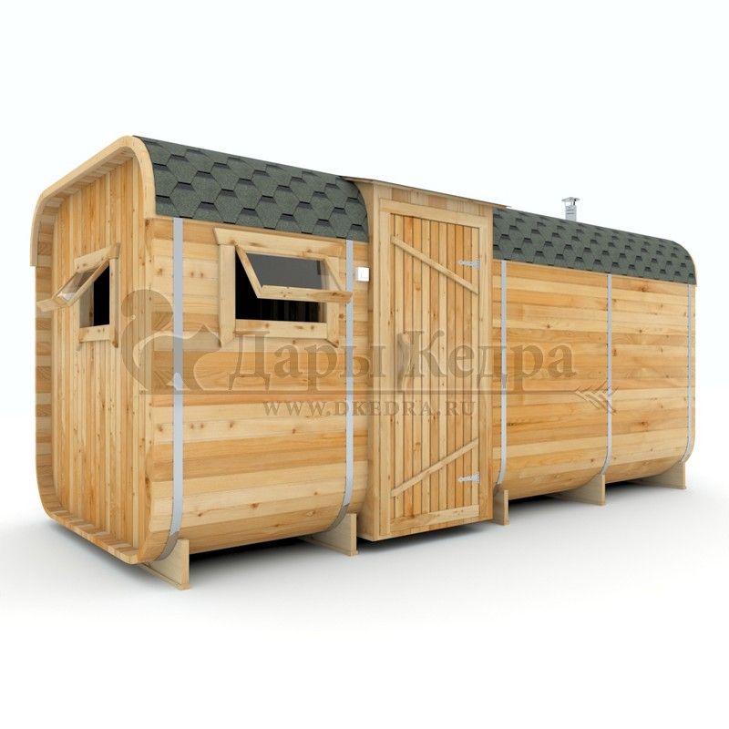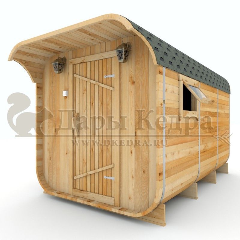 Баня-бочка квадро из кедра с козырьком (все размеры)