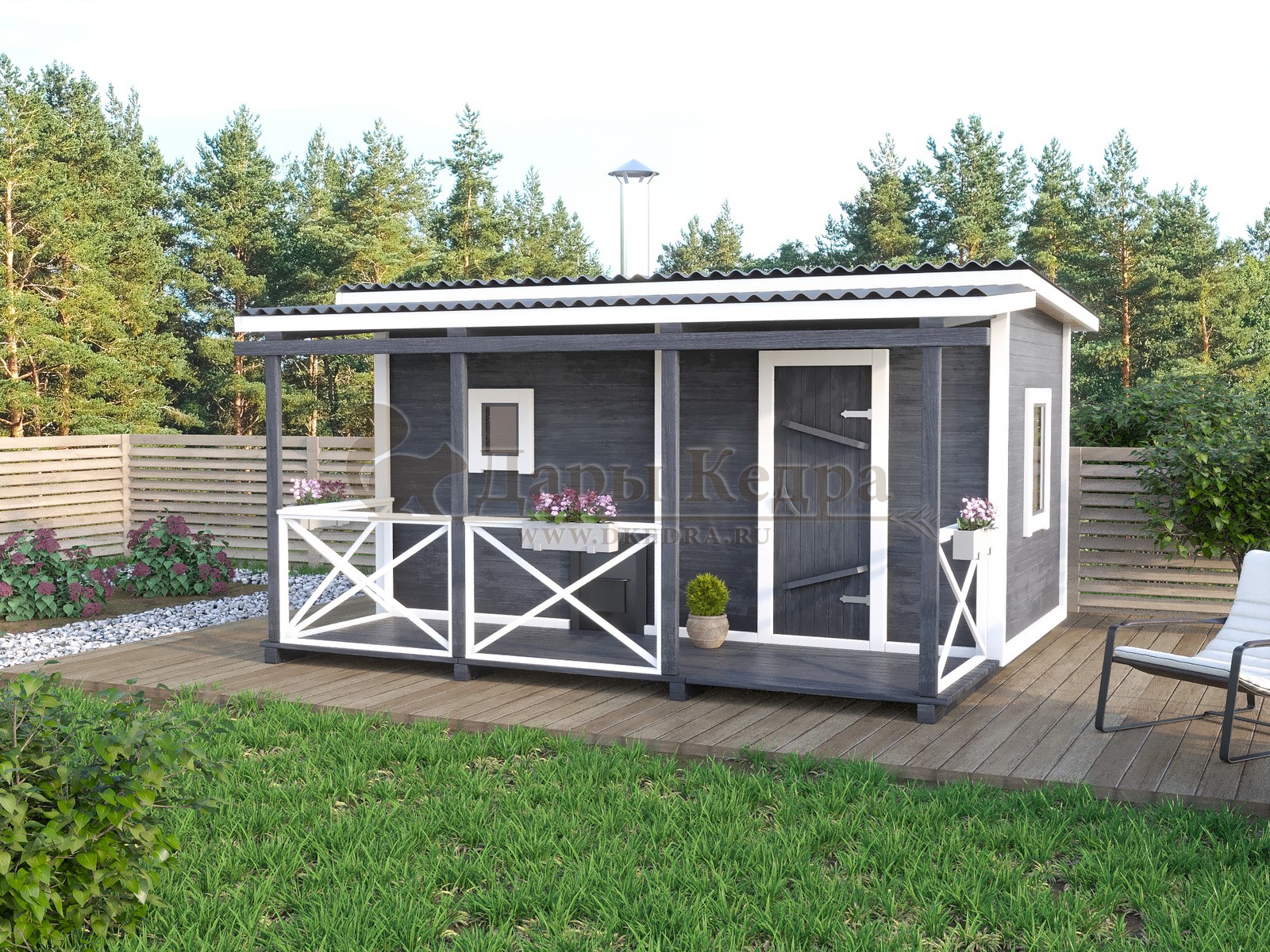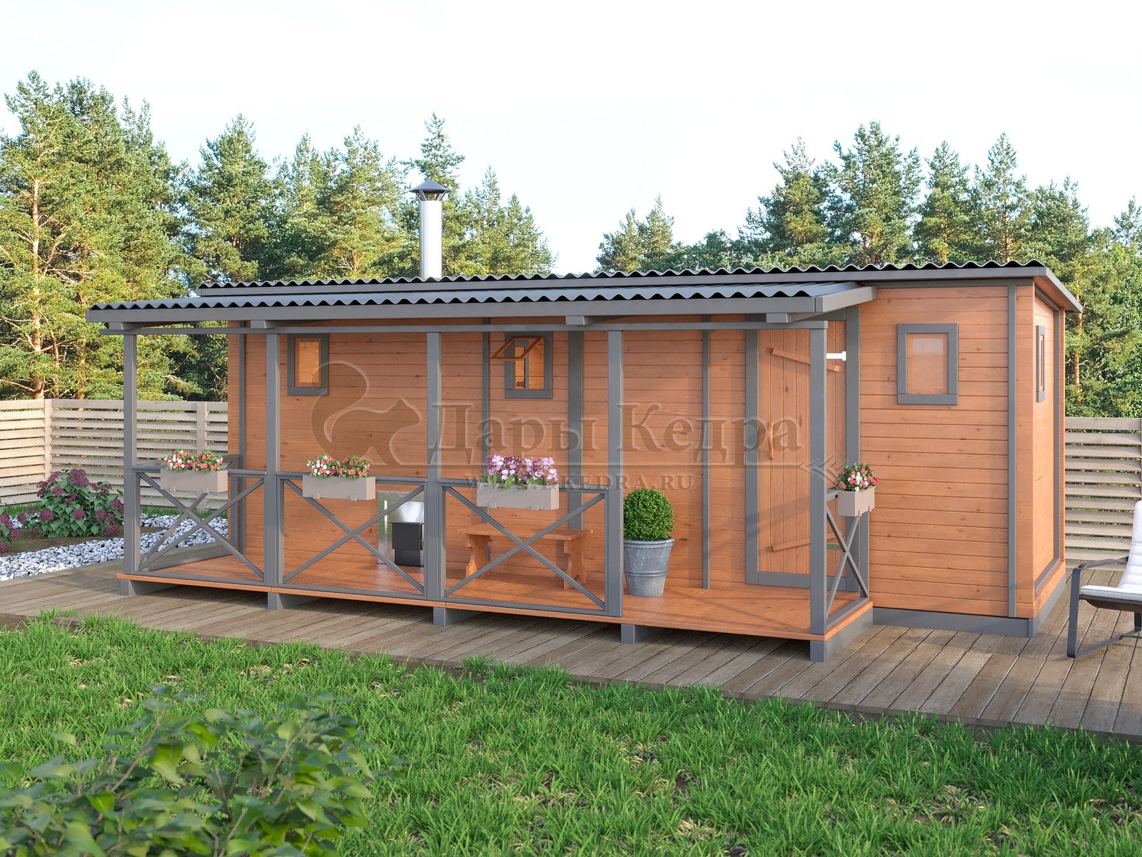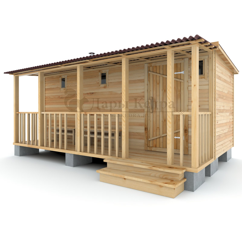 Каркасно-щитовая баня из кедра «Мини» с верандой
