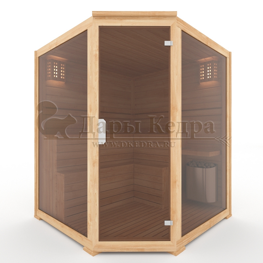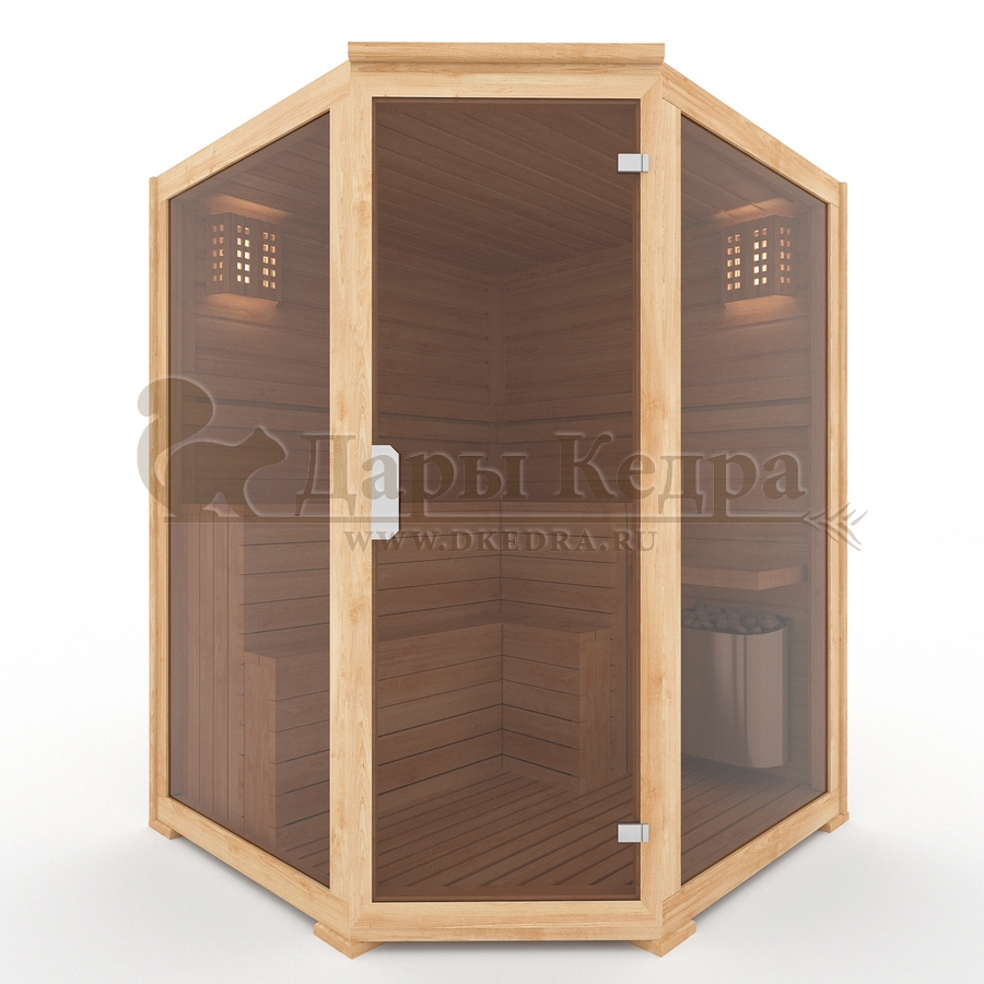 Трехместная угловая финская «Элит» сауна кабина из кедра и липы с электрокаменкой