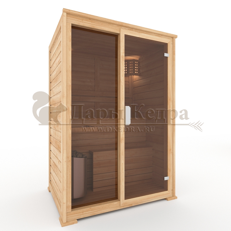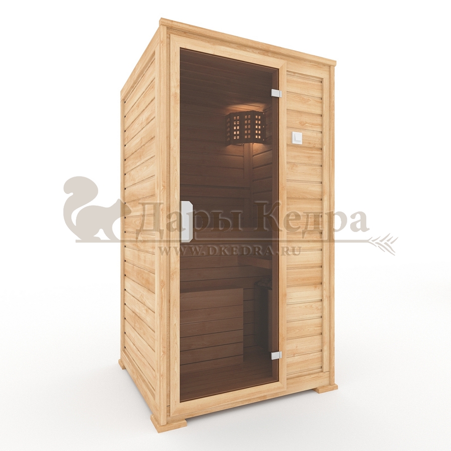 • Одноместная финская сауна кабина из кедра с электрокаменкой Это специально оборудованная готовая деревянная кабина для сухого и влажного парения. Электропечь нагревает пространство внутри и позволяет сбрызгивать камни водой, слегка увлажняя воздух. Такая процедура позволяет избежать перегрева. Сауна обшита снаружи и внутри кедровой вагонкой и имеет теплоизоляционный слой. Финская сауна с электропечью подойдет, как для домашнего использования, так и для коммерции. Доставляется в разборном виде щитами, собирается по инструкции с помощью шуруповёрта. Обращаем Ваше внимание, что в стоимость сауны уже включена дверь с закаленным стеклом в раме из кедра с фиксатором и деревянным фасадом справа. Вы можете заменить фасад на цельностеклянный с безрамной дверью за дополнительную плату. Нагреваясь, древесина кедра выделяет полезные вещества-фитонциды, которые благотворно влияют на организм в целом и укрепляют иммунитет.