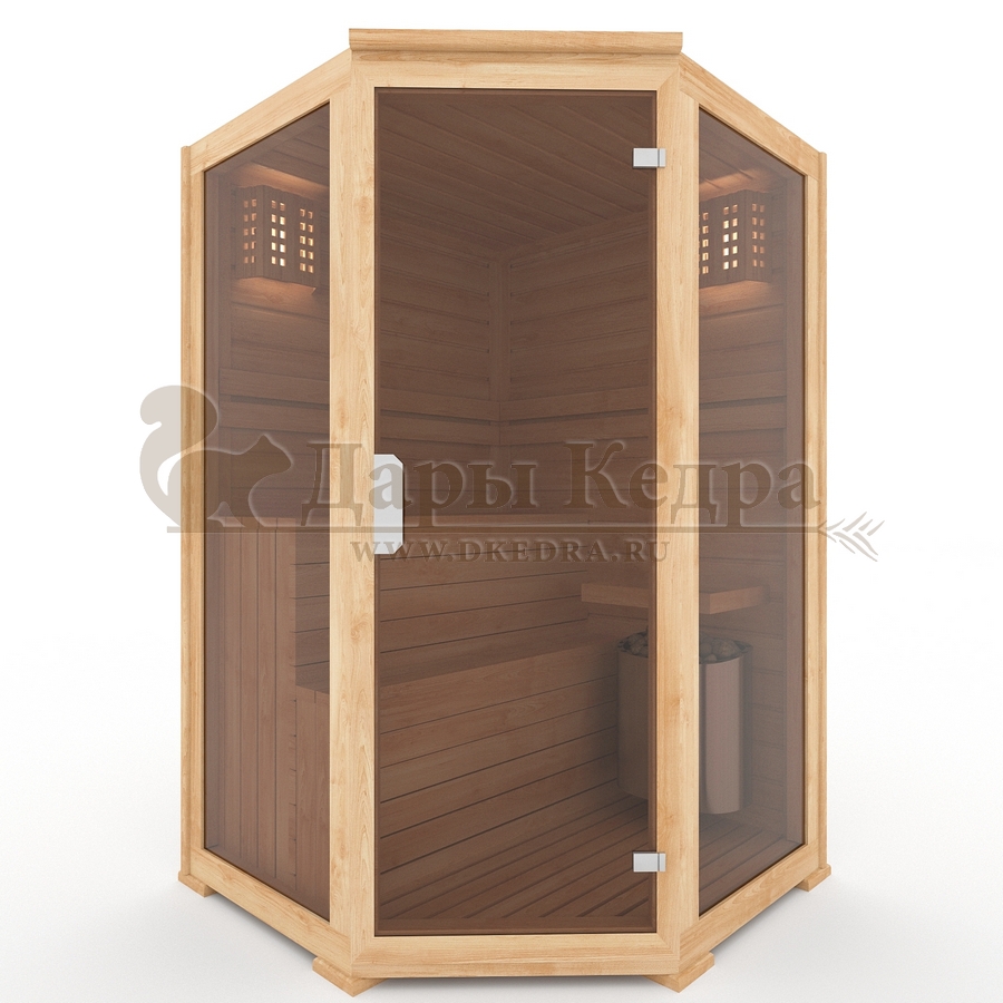Двухместная угловая финская «Элит» сауна кабина из кедра и липы с электрокаменкой