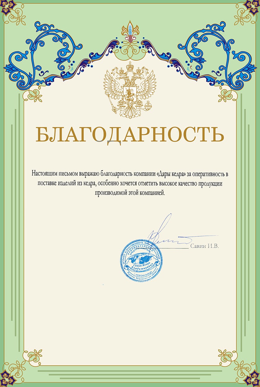С того момента, как я установил в цокольном этаже 2 сауны, в мой кирпичный дом пришёл фантастический дух кедра! Этот воздух явно улучшает настроение и состояние. Что уже говорить о самом банном процессе в кедре! Я очень рад, что решил приобрести и финскую, и инфракрасную сауны. Кстати, в финской я установил печку с парогенератором, что дало возможность превращать сауну в русскую парную. Хочу отметить превосходное качество работы фирмы «Дары Кедра». Всё очень чётко подогнанно, отшлифованно, продуманно. Спасибо!