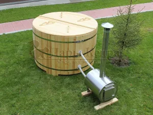 Это уличная баня, которой можно пользоваться круглый год. Купель представляет собой круглую емкость для воды, внутри которой располагаются сиденья из кедра. Подогрев воды осуществляется приставной печью с дымоходом. Для удобства пользования японская баня фурако оборудована внешней и внутренней лестницей из кедра.