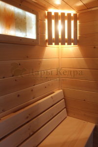 Финская сауна с электрокаменкой представляет собой компактную парную кабину, изготовленную из целебной древесины сибирского кедра. Финская