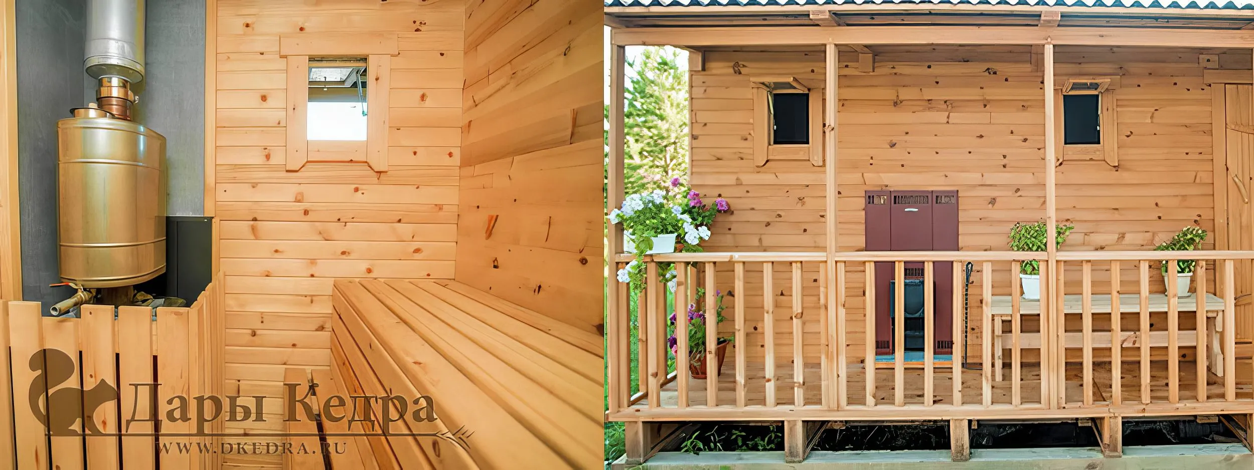 Каркасно-щитовая баня порадует своей компактностью, мобильностью, а также скоростью готовности. Ведь для того, чтобы парилка была готова к банным процедурам, достаточно всего 40 минут. Щитовая баня из кедра - это выбор тех, кто не хочет заниматься долгим строительством парной у себя на участке, а также, кто любит порядок и чистоту без лишнего строительного мусора. К тому же, такую парилку можно при случае переставить с одного места на другое, так как капитальный фундамент не треубуется.