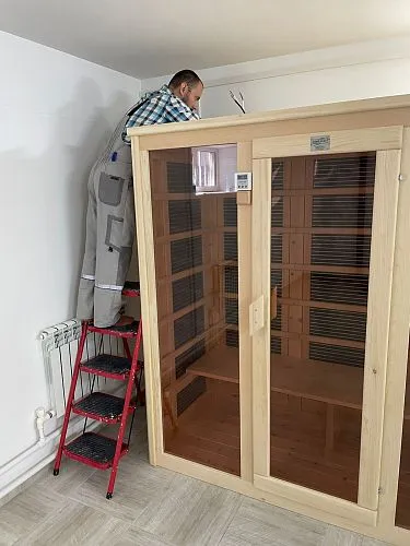Сауна впечатлила нас, просторная, как и хотели и очень комфортная внутри. Привезли и собрали быстро. Теперь паримся каждый вечер, всем довольны. Спасибо!